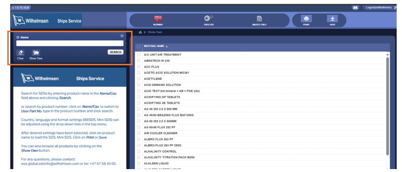 There are 2 options to download the SDSs of products from Wilhelmsen Ships Service.