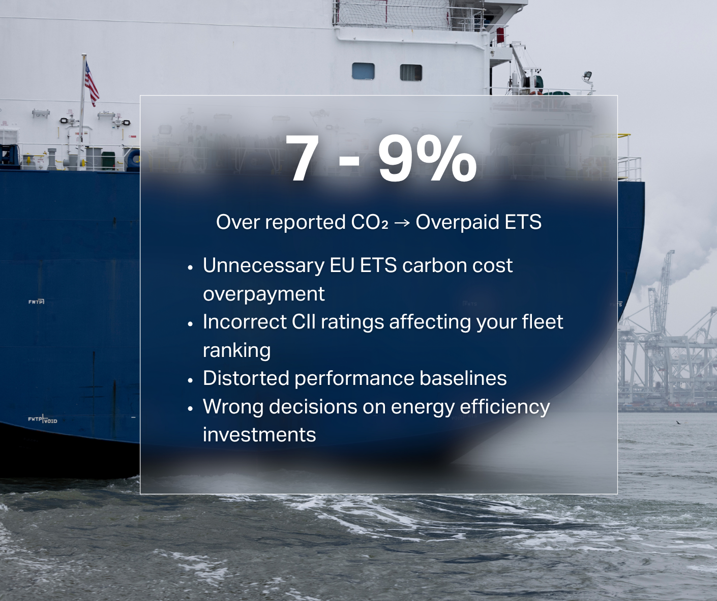 With EU ETS now applying a carbon price to every tonne of reported CO₂, that overreporting has a direct, measurable cost.